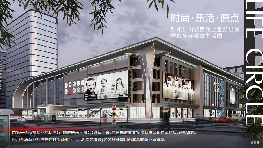 由第一代西樵商业地标原《西樵雅居乐大都会》改造而来,广东樵盈置业投资有限公司独资购买,产权清晰。采用全新商业标准搭建顶尖商业平台,以『星之精致』为名掀开佛山西翼高端商业新篇章。
