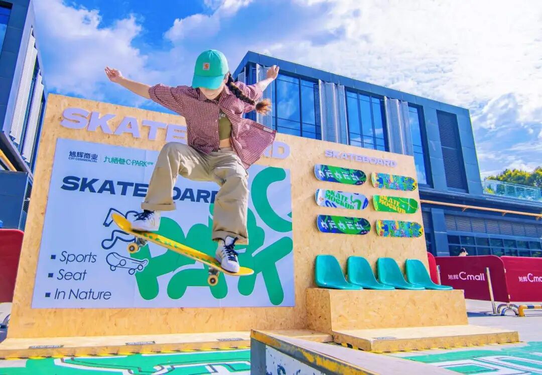 在草坪与河岸之间,年轻人身影不断掠过U型池和滑板障碍区,欢呼声与滑板摩擦地面的声音此起彼伏。这里是“栖屿”,九栖巷以自然景观为背景,打造城西最高规格的滑板主题园区。专业级U型池与平地障碍区,可承办市级乃至区域性赛事,让这里成为成都滑板文化的新地标。